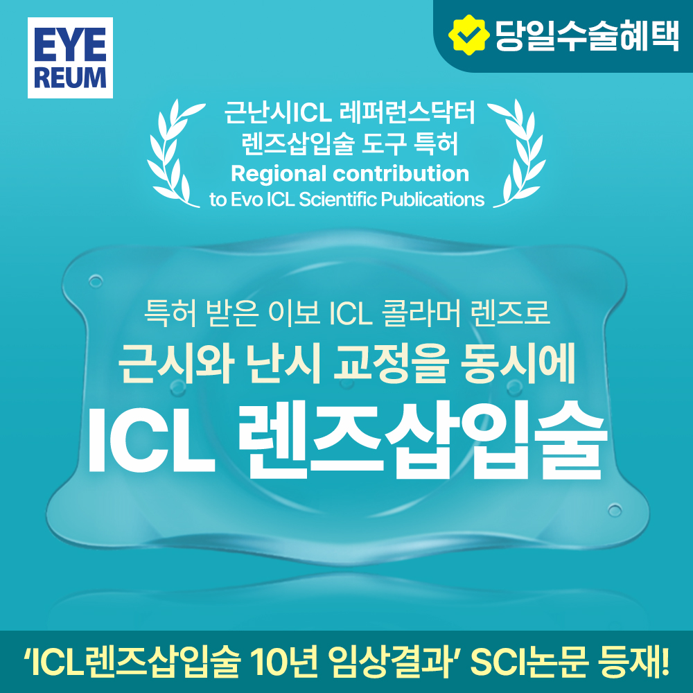 • 2021 '레이저 굴절교정수술 후 근시퇴행 재교정을 위한 ICL 렌즈삽입술 3개월 후 수술 결과' SCI 논문 발표