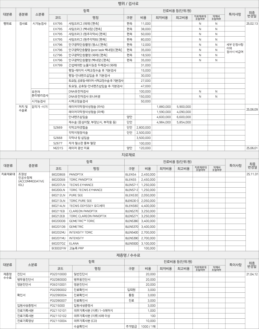 [공지] 비급여 검사/수술/제증명 발급 비용안내 (update: 2025.11.01 )