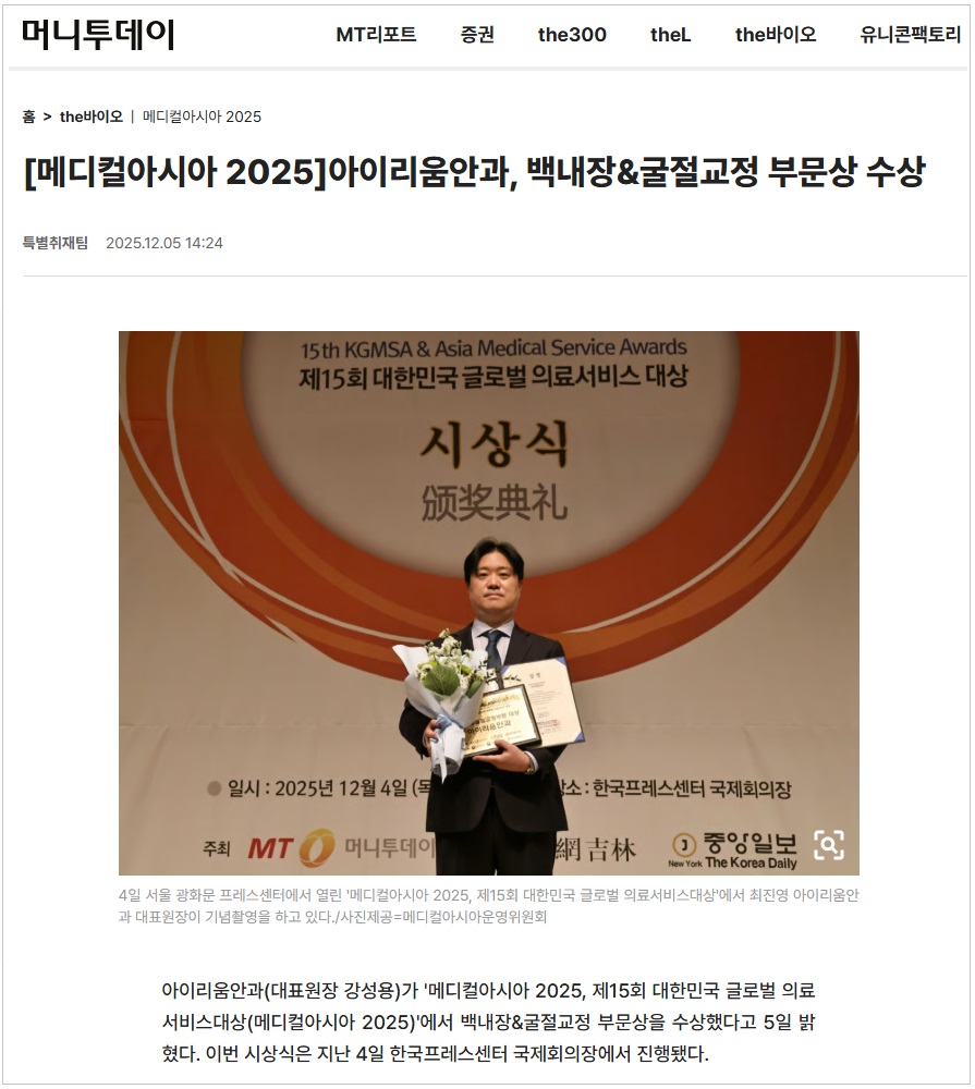 [메디컬아시아 2025년/본상] 백내장&굴절교정-아이리움안과 | 미주중앙일보