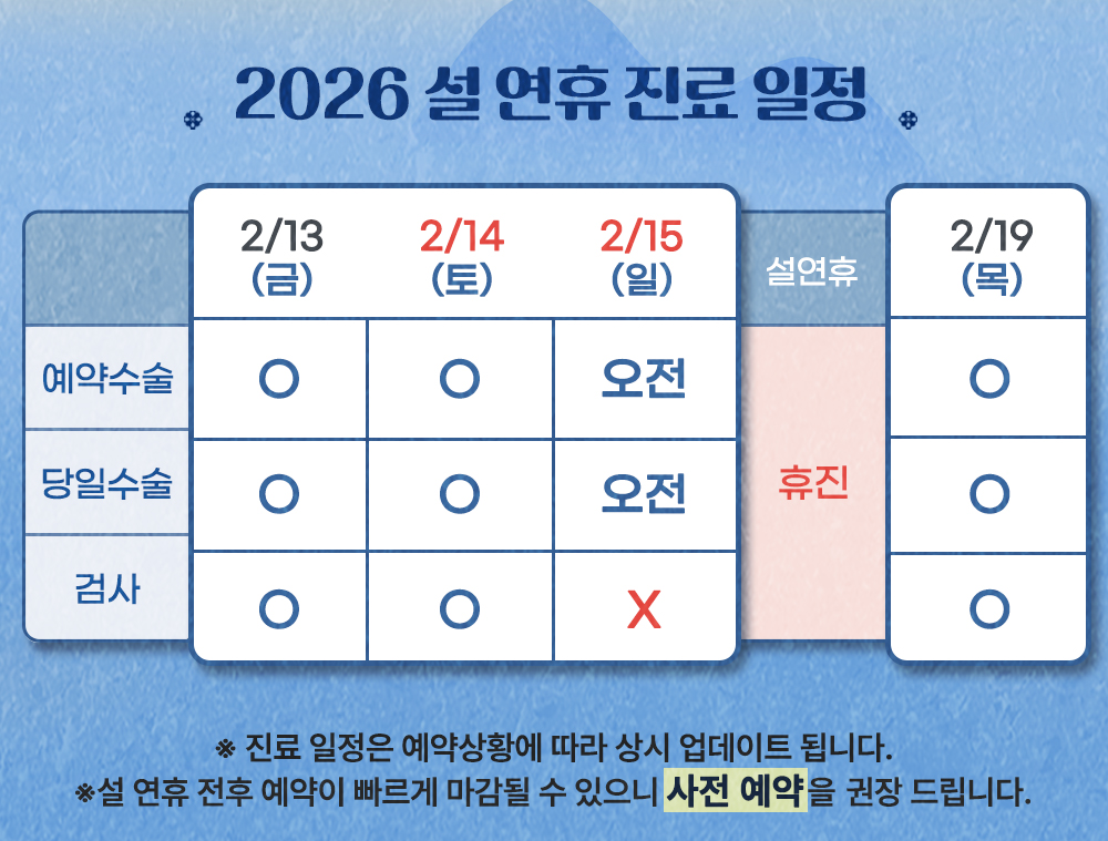 ▶ 2/16(월)~18(수) 설연휴 휴진
